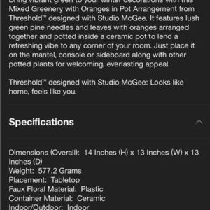 Studio McGee Threshold Mixed Greenery with Oranges in Pot Arrangement *NEW*