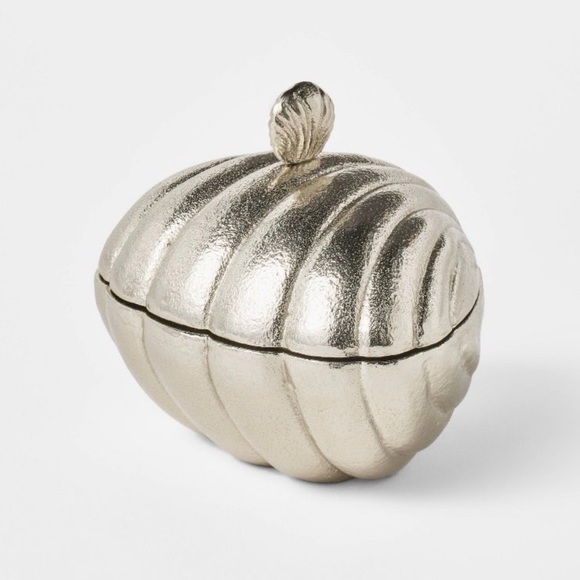 Elevate your home interiors with this Shell Container from Threshold™ designed with Studio McGee. This decorative container is designed in the shape of a shell in a silver finish to bring a touch of coastal charm to your space. Use it as a container to hold your trinkets or place it on the shelf for a stunning decor accent.