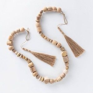 Put the finishing touch on any decorative display in your home with this wooden bead garland from the Studio McGee x Target collection. It’s made up of large wooden beads for a unique, handcrafted look you'll love. Tassels of twine at each end add extra visual interest and a touch of playfulness. The light color of the wood coordinates well with an array of color palettes for an easy addition to your decor. With a long length, you have plenty of options for how to display this garland - coil it on an end table, stretch along the mantel or drape it over a bowl or basket for a unique look.