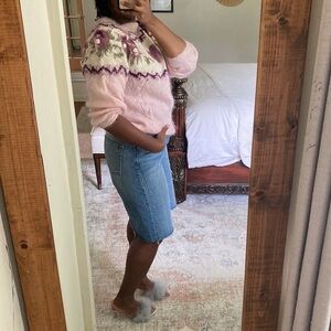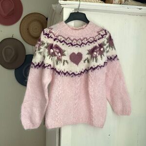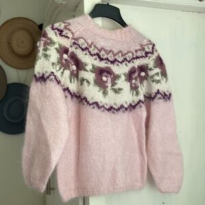 Vintage Studio Michelie Stuart pink hand knitted embroidered long sleeve sweater size S