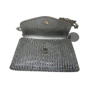 This Studio NYC Silver Rhinestone Crossbody with Chain is a stunning blend of style and functionality. Its silver color and rhinestone details make it an elegant addition to any outfit.