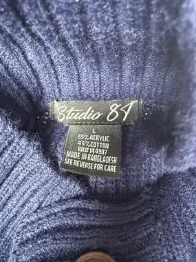 Studio Navy Textured Button-Front Cardigan