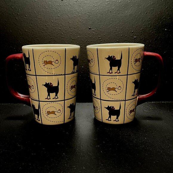 Studio Nova “Cat in Heels” set of two black cat gold mouse 12 oz coffee tea mugs