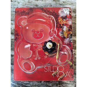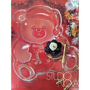 Studio Nova Holiday Bear Hostess Platter 12" Glass Christmas Vintage with Box