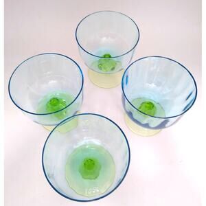Studio Nova Set of 4 Hand Blown Blue and Green Glass Stemmed Dessert Bowls