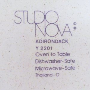 Backstamp: Studio Nova; Adirondack; Y2201; Oven to Table; Dishwasher and Microwave Safe; Thailand-D