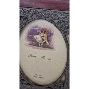 *Inlaid 3 and 1/2 inch x 5 inch photo frame surrounded by a grapes and leaves antique look metal frame