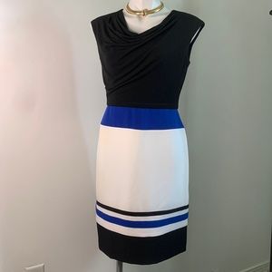 Studio One cowl neck dress. Fully lined. Stretch material blend. Body 95% polyester 5% spandex. Lining 100% polyester. Invisible zipper in back Lovely dress. Lovely Used Condition