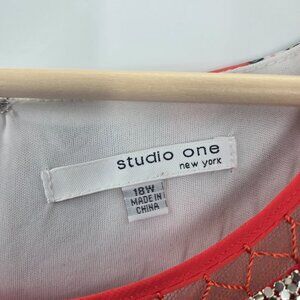 Studio One New York Bohemian Orange Gray Asymmetrical Hem Midi Dress Size 18W