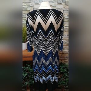 Studio One New York Stylish XL Chevron Patterned Black and Blue Dress
