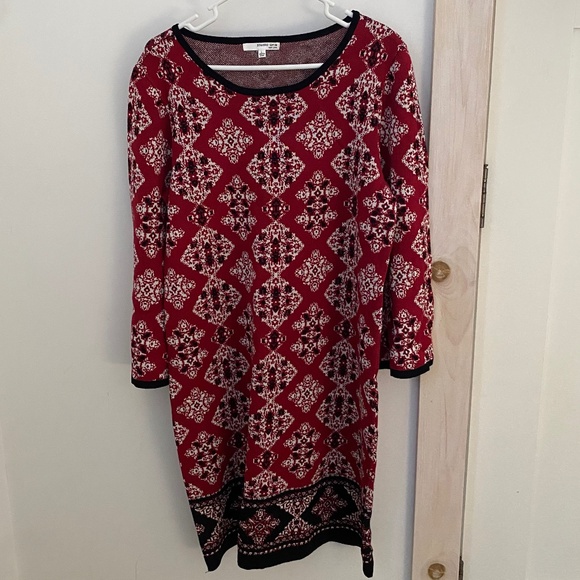 Studio One New York Nordic Sweater Dress Size L Large. 78% rayon, 22% polyester. Bust measures approximately 40” length from top of shoulder to bottom of hem approximately 39.”