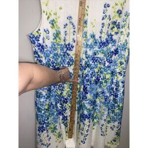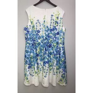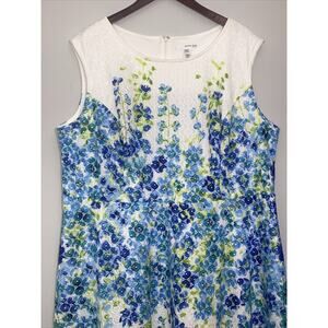 This is a floral print sleeveless dress with a round neckline and a zip closure. It is made of polyester and spandex and has a knee-length hemline. The dress is designed in a fit and flare or sheath style and is available in size 22 for plus size women. It is suitable for various occasions such as weddings, parties, workwear, and business. The dress is from the brand Studio One New York and has themes of USA, holiday, love, and wedding. It is perfect for summer, fall, and spring.
