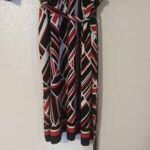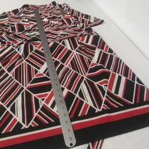 Studio One New York women's size XL faux wrap, pull over, V-Neck, diamond print with stripes, collared dress with belt