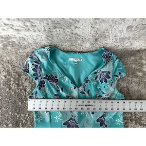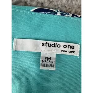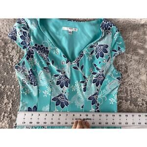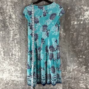 Studio One Petites Size PM Floral Print Stretch Fit Flared Dress Blue Cap Sleeve