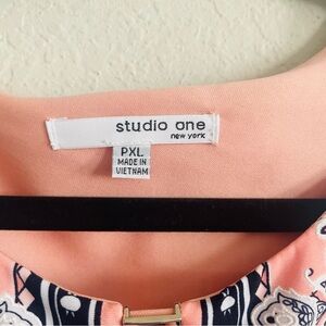 Studio One Pink and Black Patterned Dress size PXL salmon elegant midi stretchy