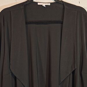 In excellent used condition no flaws. Waterfal front and mid forearm sleeves. Perfect over any top or dress. Slinky feel