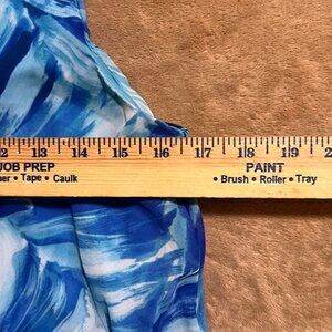 Introducing the Studio One Women's Size 8 Summer Dress, a perfect blend of style and comfort designed for the modern woman. This chic halter dress features vibrant shades of blue and teal merged into a striking abstract floral pattern. The dress is crafted from a lightweight, airy fabric that promises to keep you cool and comfortable during warm summer days. The unique tiered ruffle design cascades elegantly from waist to hem, creating a playful, yet sophisticated silhouette that flows with your every move. With its sleeveless halter neck, this dress offers a flattering fit for all body types. The dress's versatile color palette makes it an ideal choice for a variety of occasions, from casual outings to more formal events.