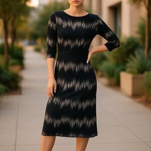 Studio One Black Dress Size 8 – Elegant Midi Style with 3/4 Sleeves: