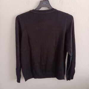Features: ribbed at neck, cuff, and straight hem; round neckline; long sleeves; icon on front