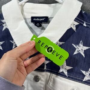 Studio Park x Kerstin Lindquist White Denim Jacket Sters & Stripes Size Medium