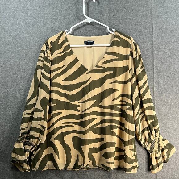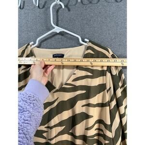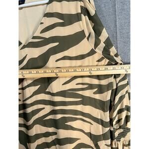 Studio Park x Leah Williams Printed Chiffon Blouse with Ruff Khaki Zebra Large