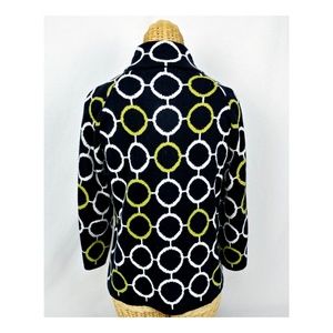 New with Tags Studio Petite JPR women's sweater jacket, black, circle pattern, size PL.