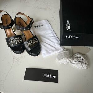 Studio Pollini Black Leather Studded Sandals – Size 7.5