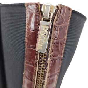 Studio Pollini Brown Leather Croc Round Toe Zipper Boots Size 36 US 6.5B