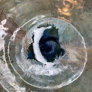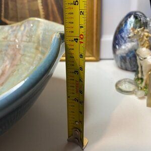 Studio Pottery Bowl Signed JD Crystal Bottom And Crystalline Grazed Blue Green