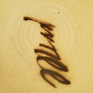 Wheel-thrown stoneware with a raised inset foot on the base (approx. 2”), giving it presence and stability. Signed on the underside by the artist; maker and origin are unknown. Likely mid-century to late 20th century studio pottery.
