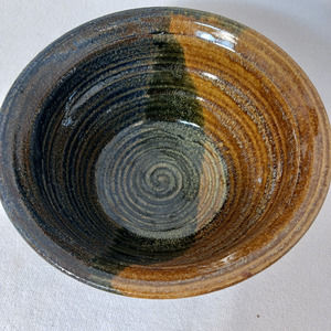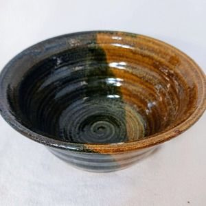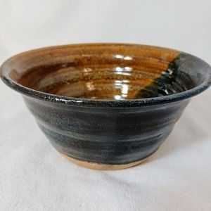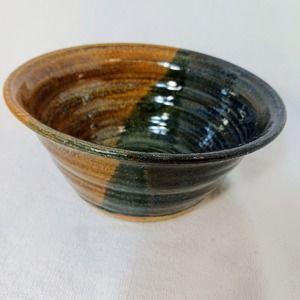 Studio Pottery Half/Half Glaze Dark and Neutral Glazed Cereal Soup Bowl Drop Key