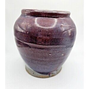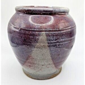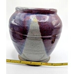Studio Pottery Handmade Stoneware Purple Plum Grey Glaze Vase Signed. Sold as seen in photos. Good condition.