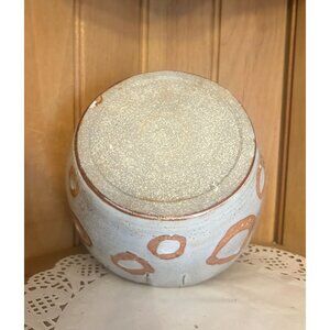 Studio Pottery Rustic Ceramic Bowl Gray Brown Abstract Circular Polka Dot Patter