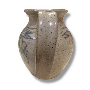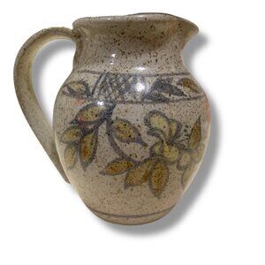 Studio Pottery VTG Mini Ceramic Pitcher Floral Tan Blue Accents 5’ Artist Signed