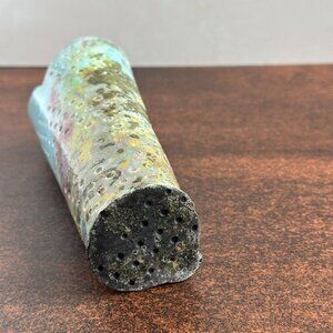 - Exterior includes crater-like bubbling and pitting from the firing process, enhancing the piece’s handmade character