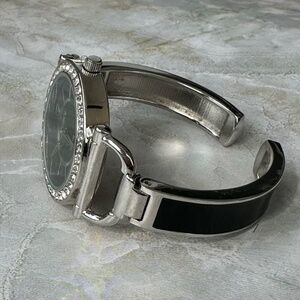 ✨ Studio Quartz Crystal Accent Watch – Black & Silver