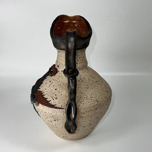 Studio Stoneware Art Pottery Pitcher Applied Design Collectible Marked Israel
