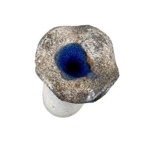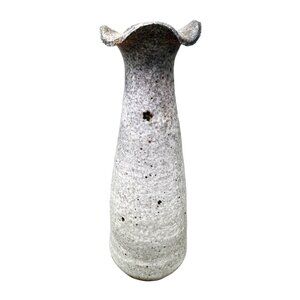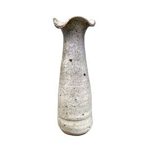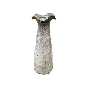 This stoneware vase features a unique fluted top and a captivating blue interior. Its vintage design enhances any setting with its textured finish and elegant silhouette. Ideal for floral arrangements or as a standalone decorative piece, it adds a touch of sophistication to home or office decor. In good condition, no chips or cracks. As is typical for handcrafted pottery there may be some surface and/or glaze inconsistencies.