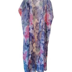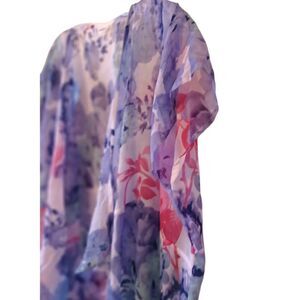 Studio Thirtysix Floral Wrap Short Sleeve Cover Up Open Cardigan Sheer Sz O/S