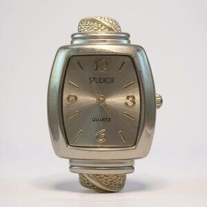 Studio Time STD951T Ladies Quartz Cuff Bracelet Watch Silver & Gold-Tone Stainle