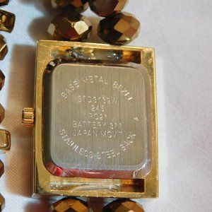 Pretty, with copper gold-ish brown color plastic beads and in between the beads, faux little diamonds