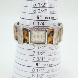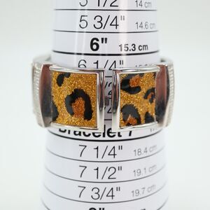 Studio Time Womens Leopard Print Cuff Watch 23mm Dial Crystal Bezel New Battery