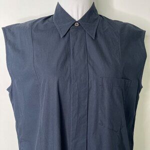 TAGS: Studio Tomboy, Women's, Navy Blue, Sleeveless, Button Down, Dress, Casual, Chic, Lightweight, Versatile.