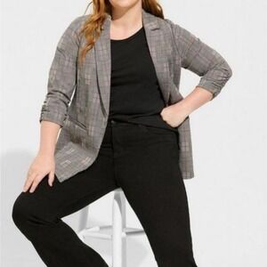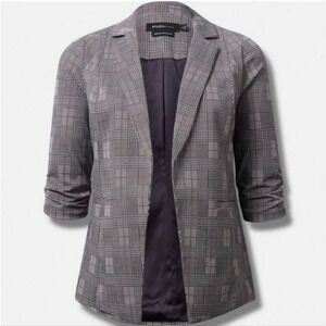 🆕 Studio Torrid Blazer PLUS 4 4X Stretchy Plaid Ponte Comfy Work Wear NWT NEW
