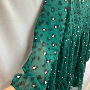 Studio Untold Green Longsleeve Dress Heart Animal Print Tiered Ruffle 24