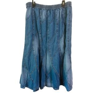 Studio West Apparel Denim Patchwork Semi Elastic Waist Maxi Skirt Size XL