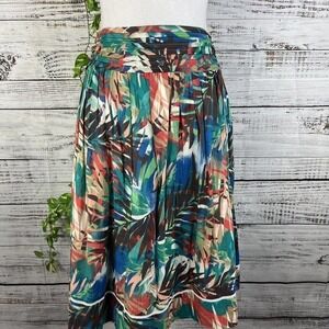 Studio West Apparel Skirt size Large Coral Green Floral Tropical Knee Hawaiian