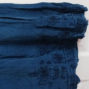 100% RAYON top 18" pit to pit ruffled cap sleeve, v neck, elastic under bust line, 30" neckline to hem
