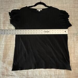 Studio West - Black Puff Sleeve Top - M - Cotton Modal Blend - Ruffle - EUC