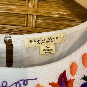Studio West Boho Embroidered Peasant Dress White Rayon Cotton Lined XL